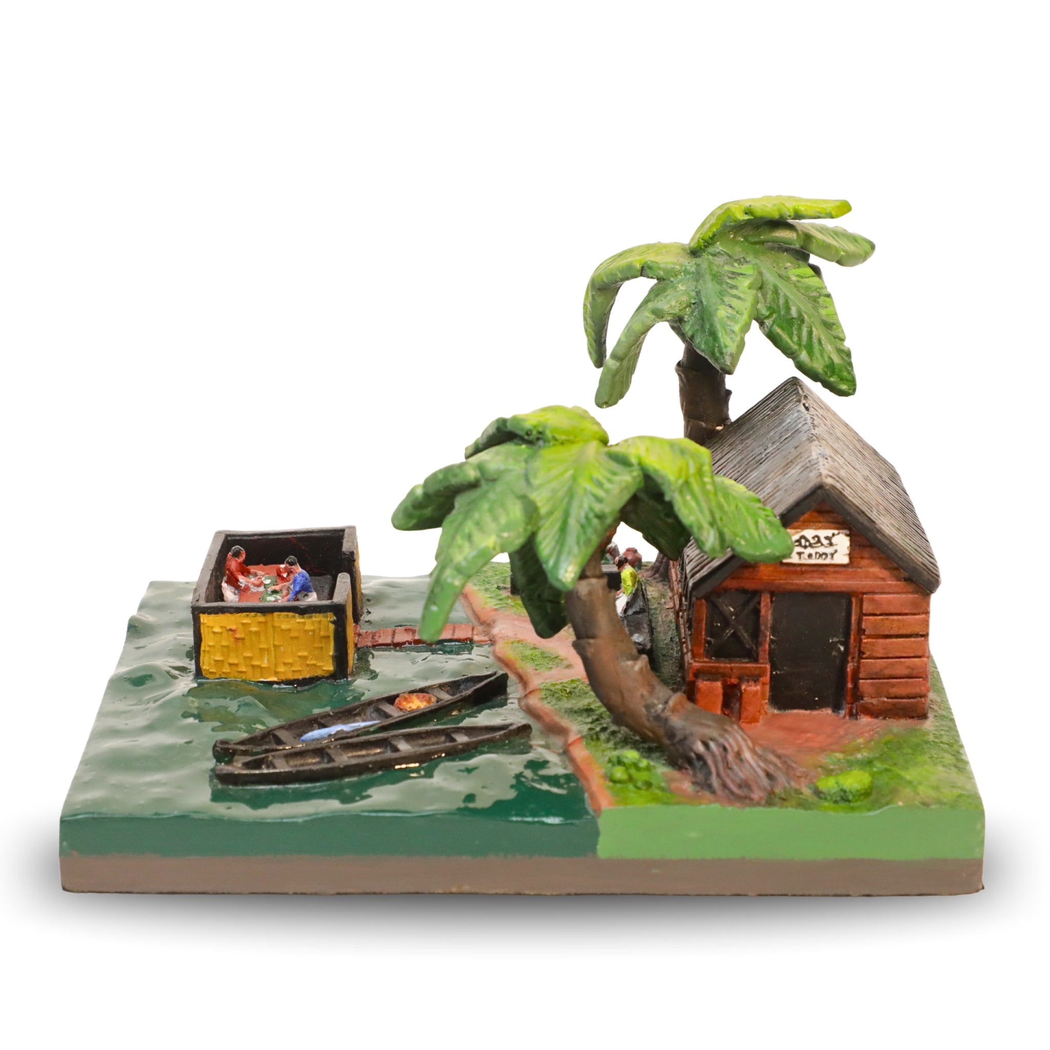 Step into the soul of Alleppey with this beautifully crafted resin miniature inspired by Kerala’s iconic toddy shops. Set against the serene backdrop of the backwaters, this piece features charming floating seating that evokes the laid-back rhythm of life along the waterways.