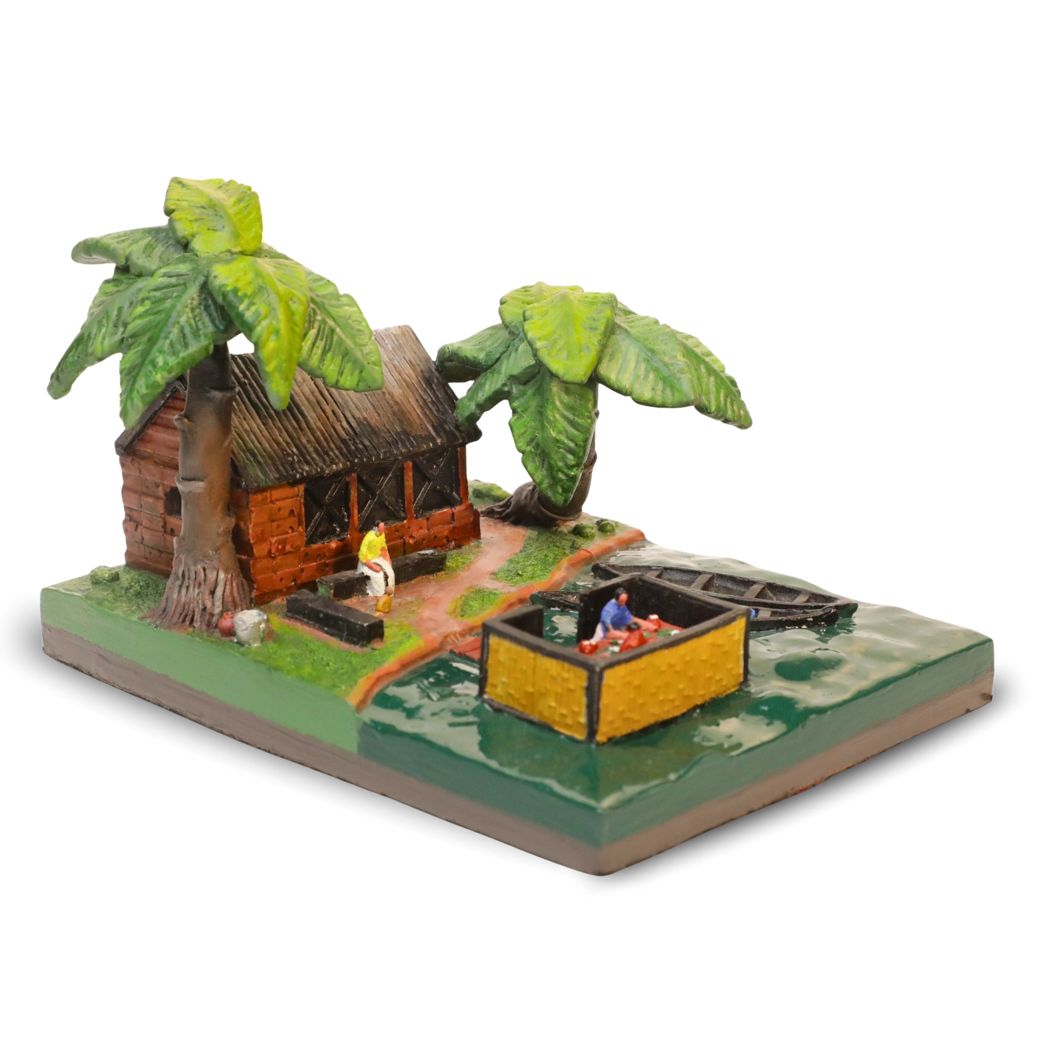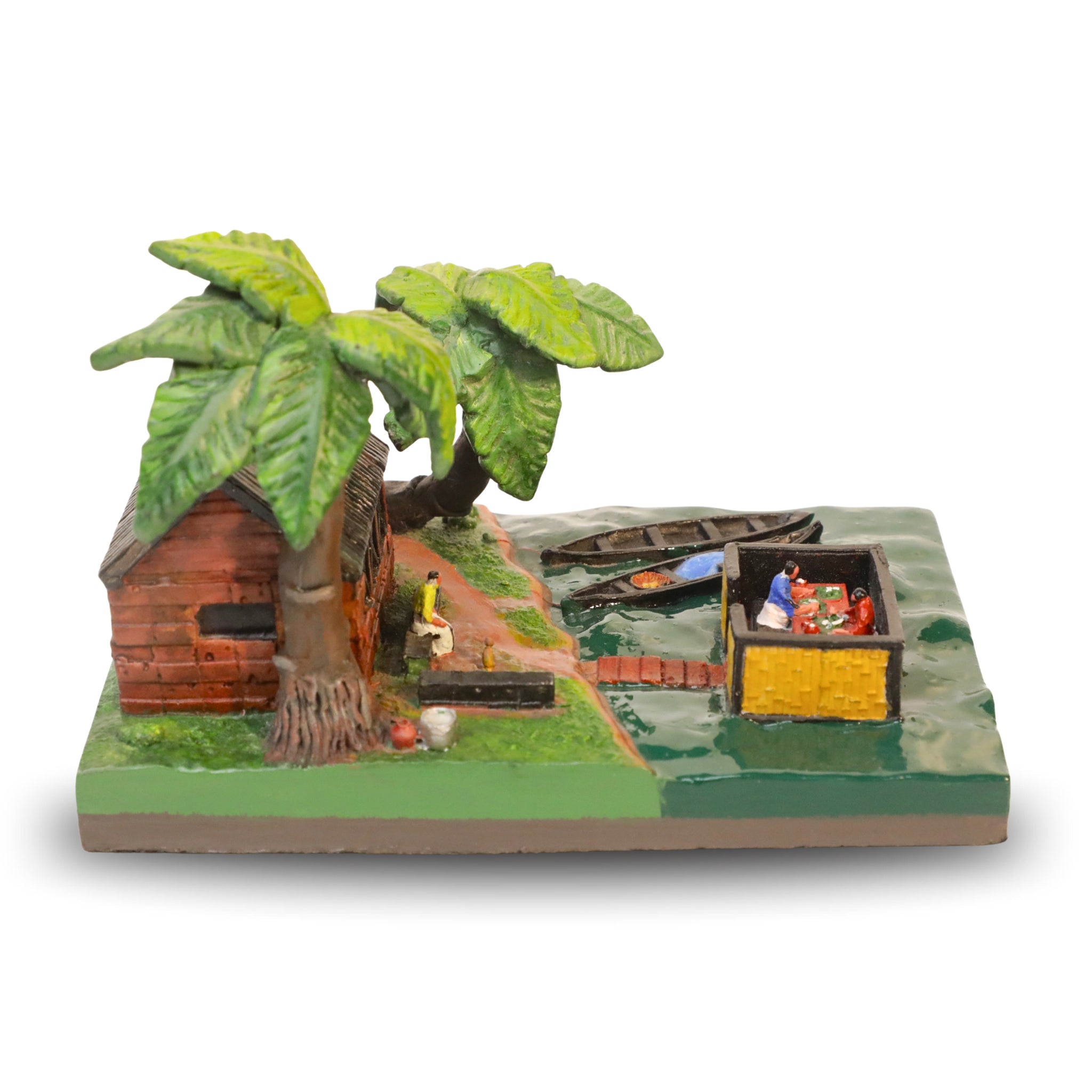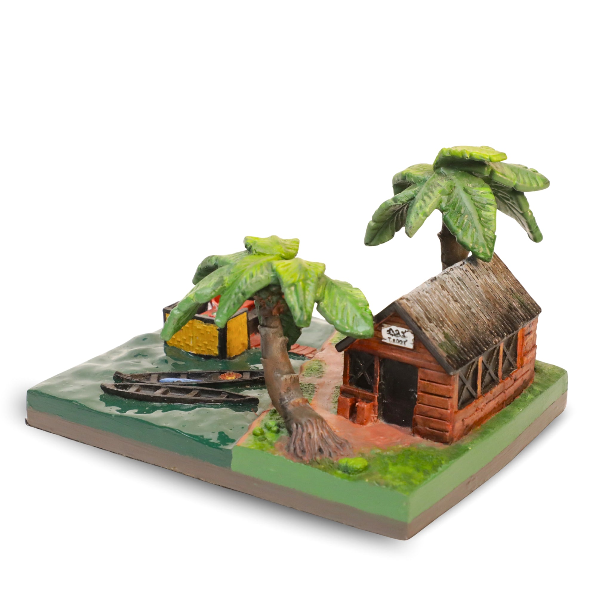 Every detail captures the essence of local culture—from the rustic ambiance to the quiet beauty of Kerala’s lush landscape. Whether you're a traveler at heart or a lover of traditional craftsmanship, this miniature brings a slice of Alleppey's charm into your space, making it a perfect keepsake or conversation piece.