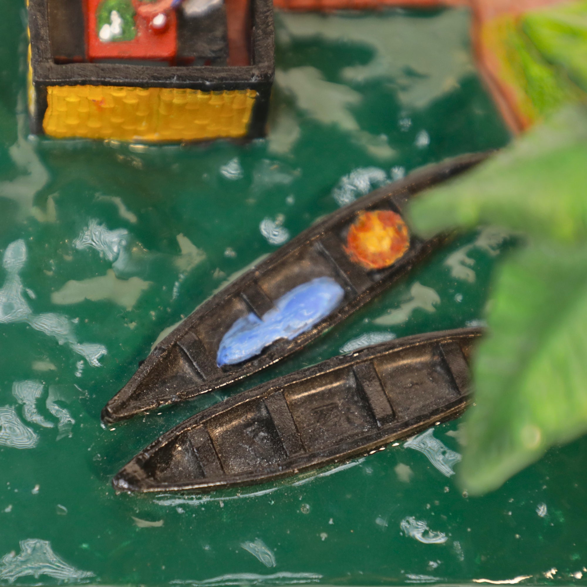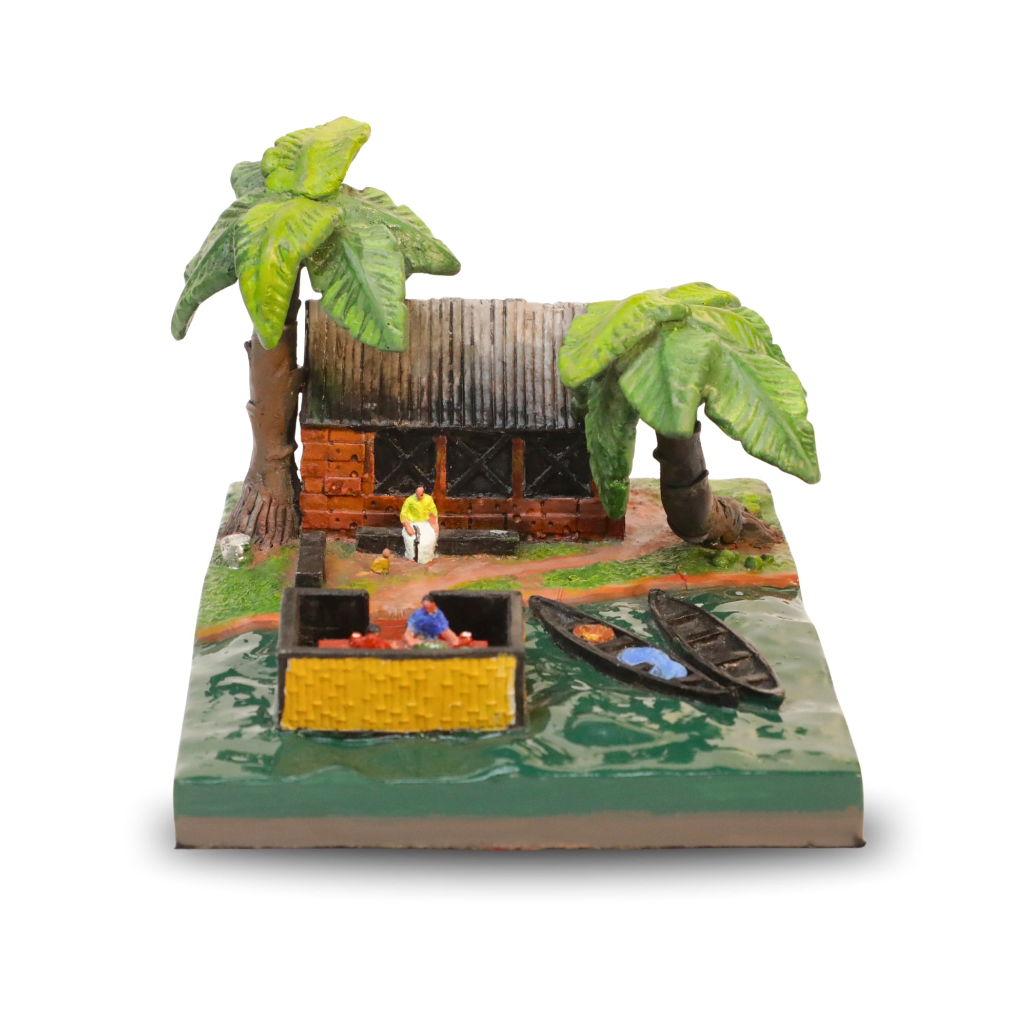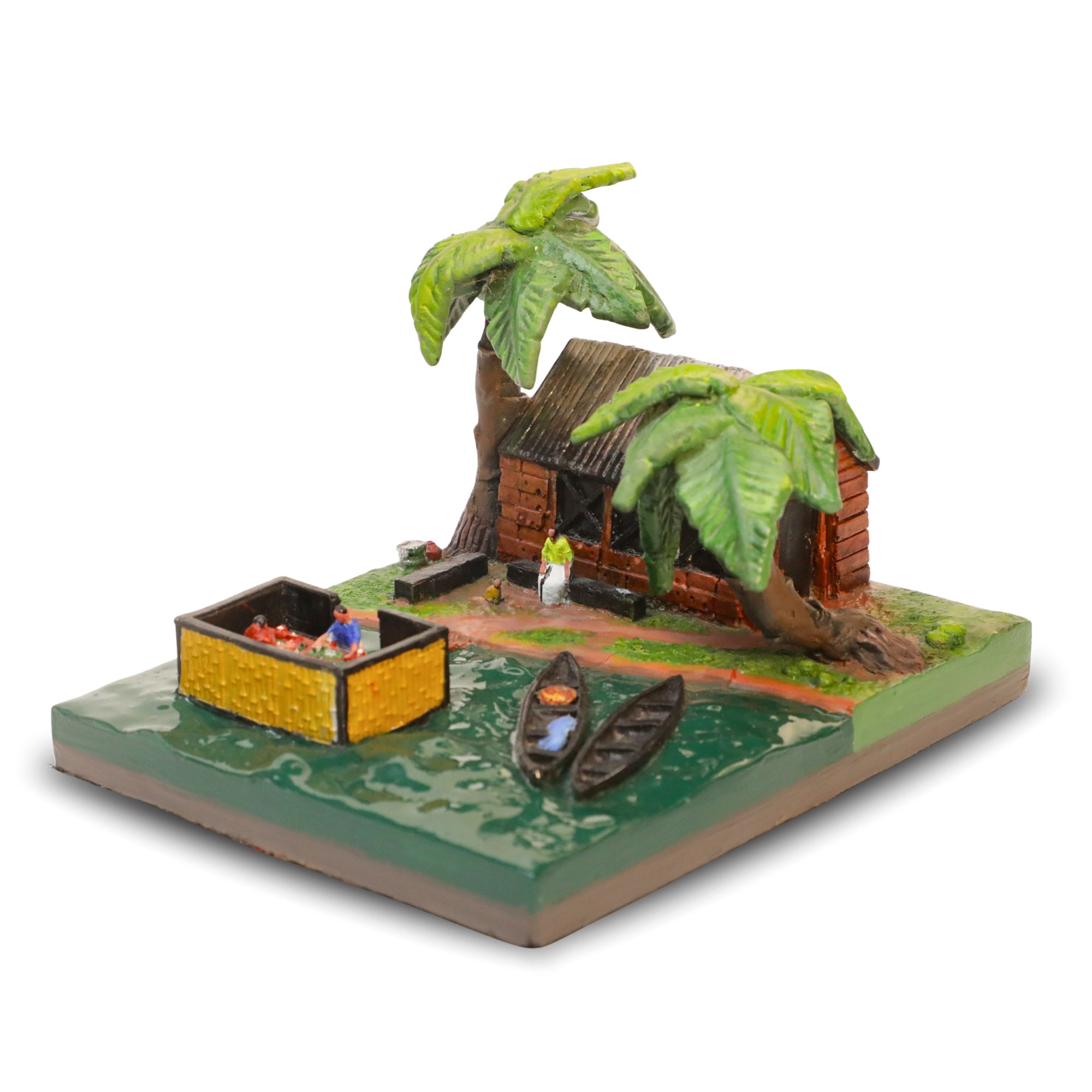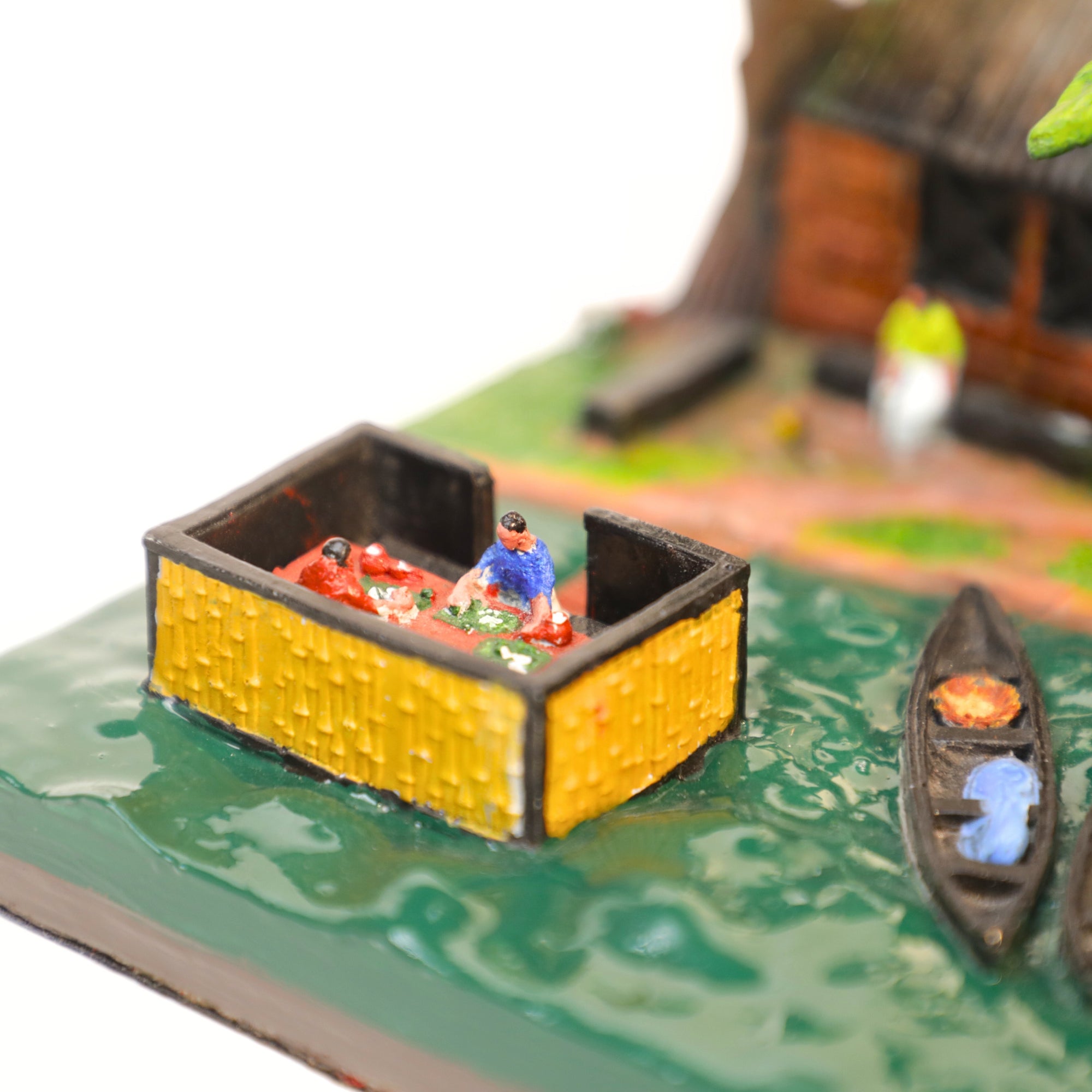Every detail captures the essence of local culture—from the rustic ambiance to the quiet beauty of Kerala’s lush landscape. Whether you're a traveler at heart or a lover of traditional craftsmanship, this miniature brings a slice of Alleppey's charm into your space, making it a perfect keepsake or conversation piece.